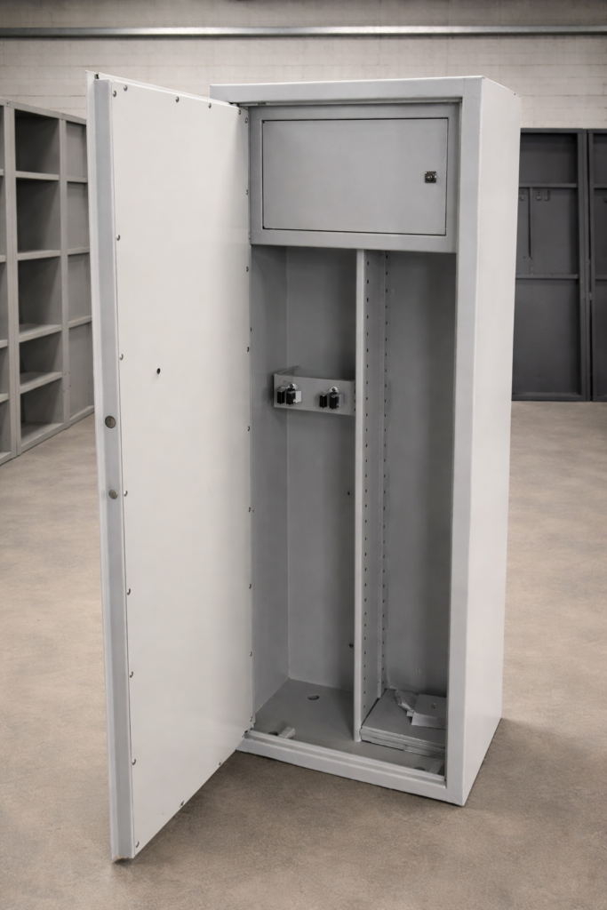 Виготовляємо у Львові різноманітні види металевих шаф: локери, колекторні та комунікаційні шафи, шафи для переодягання, архівні шафи, для зберігання засобів індивідуального захисту, господарські.Тут використовують метал товщиною 0.5, 0.8, 1 мм – залежно від побажань замовників